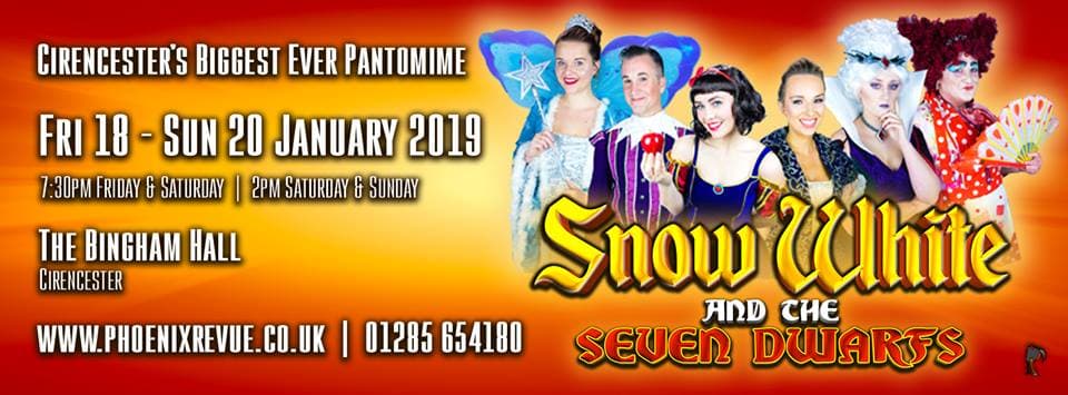 The Phoenix Revue Company presents Snow White and the Seven Dwarves - this year's show is set to be the biggest, funniest and most magical yet! Fun for all the family. Grab your tickets now to see one of the UK's biggest community pantomimes.